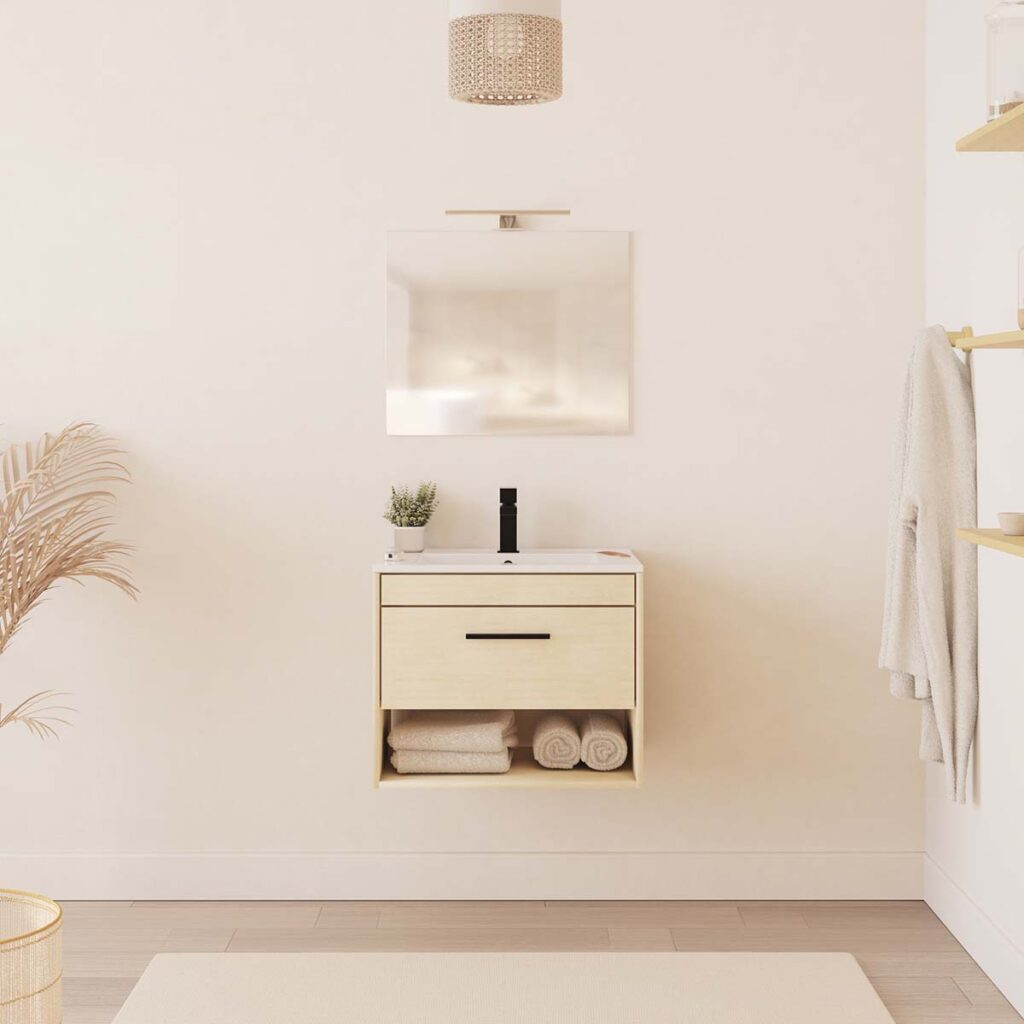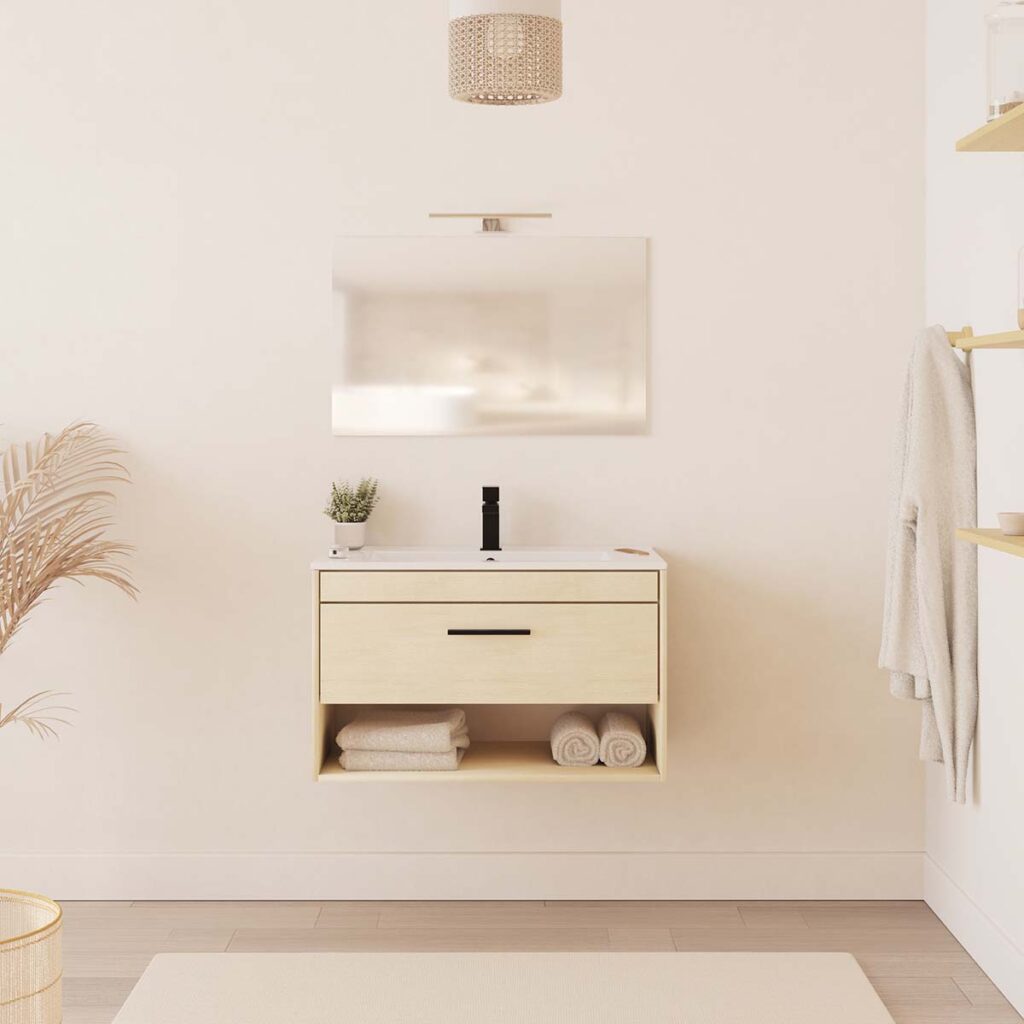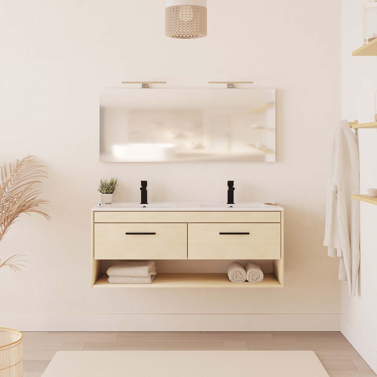 Klean, a spacious and elegant bathroom set with double ceramic basin, soft-close drawers, and illuminated mirror
