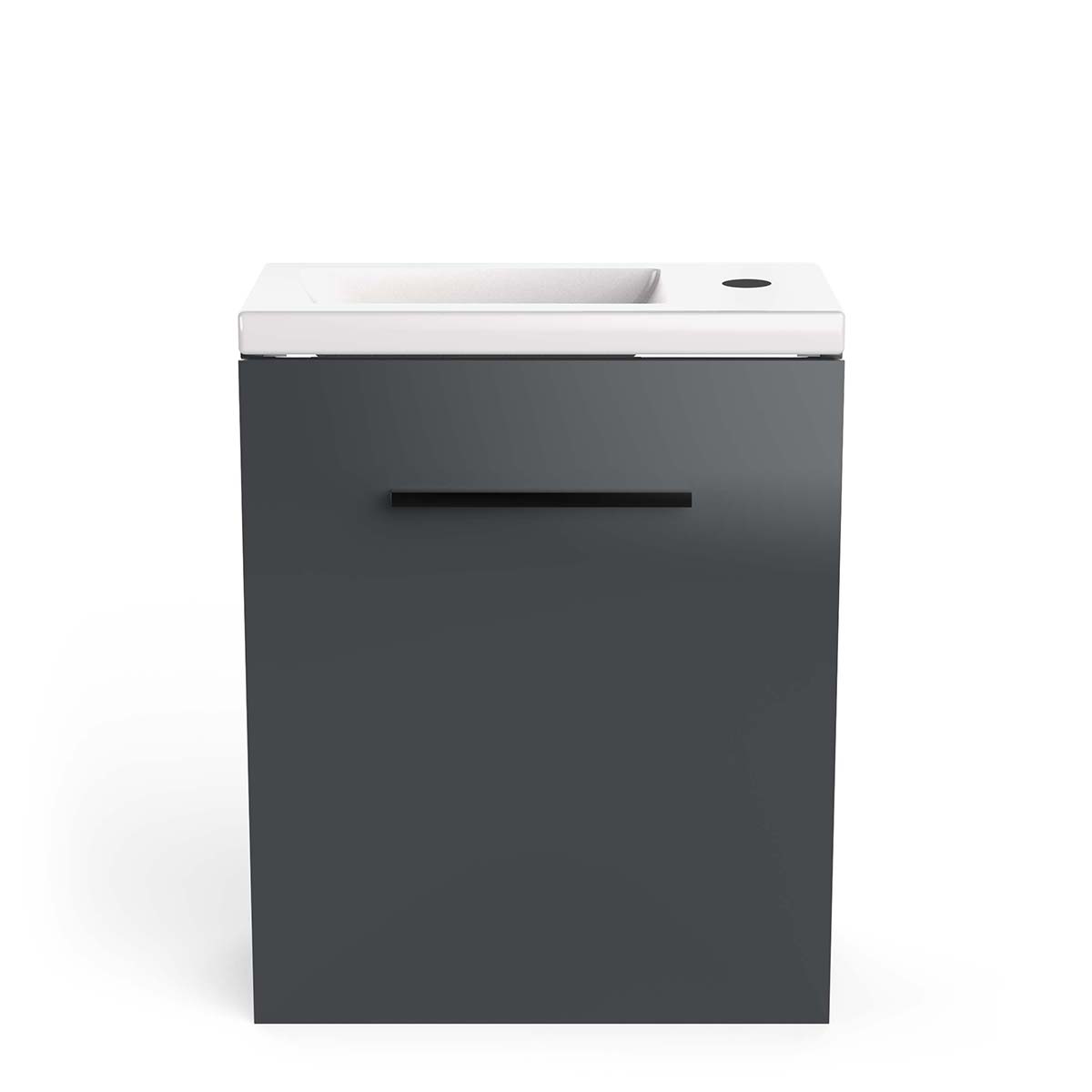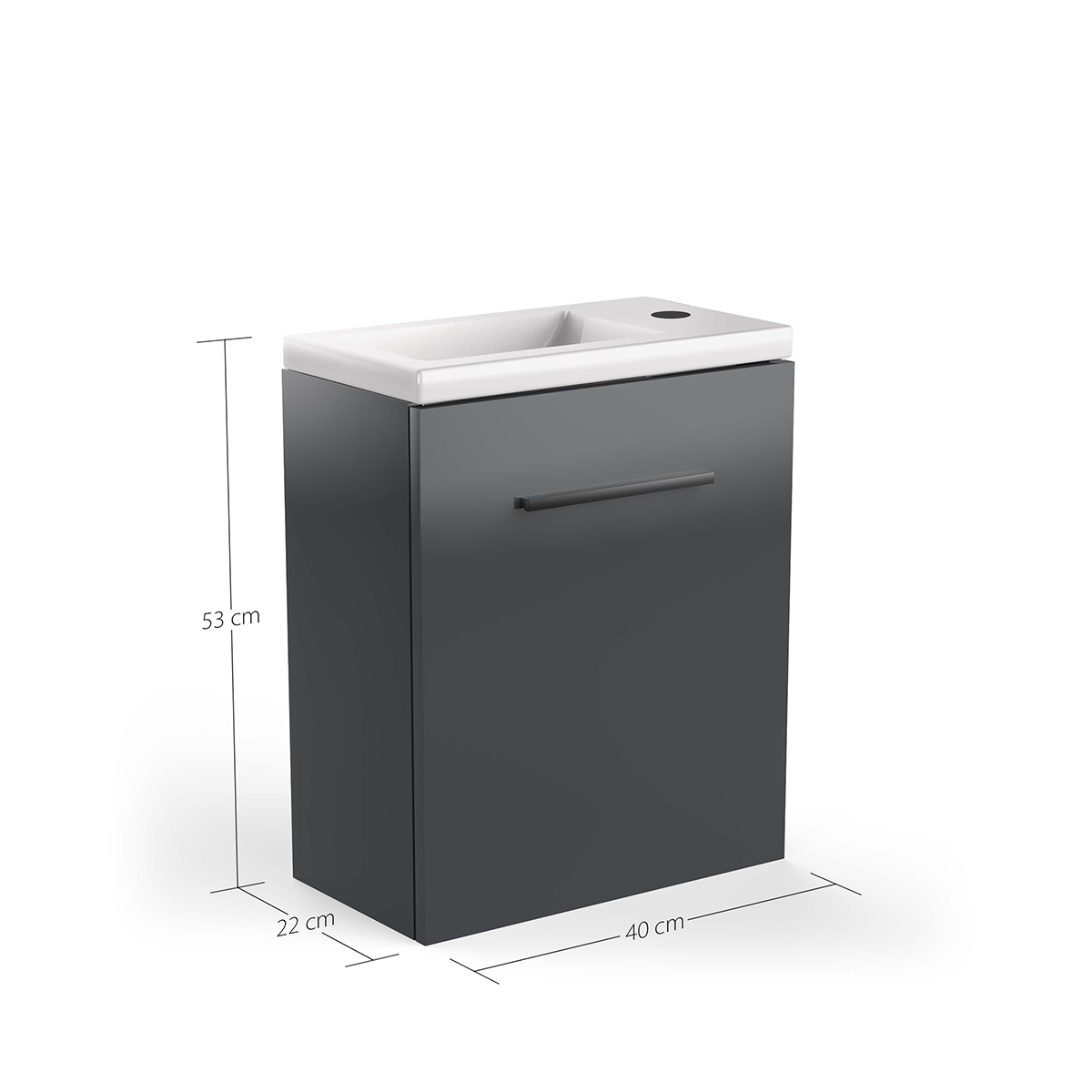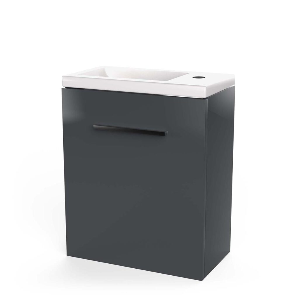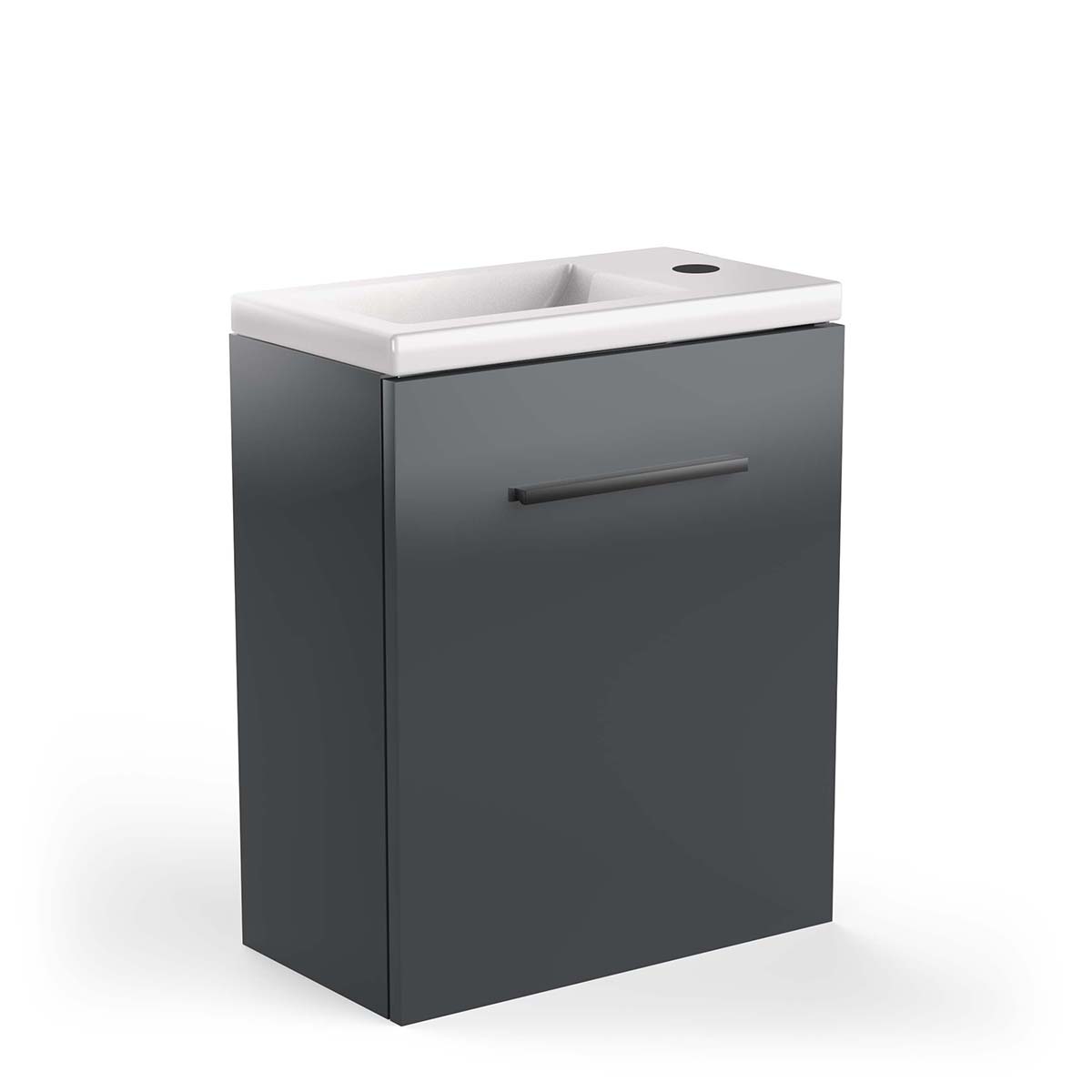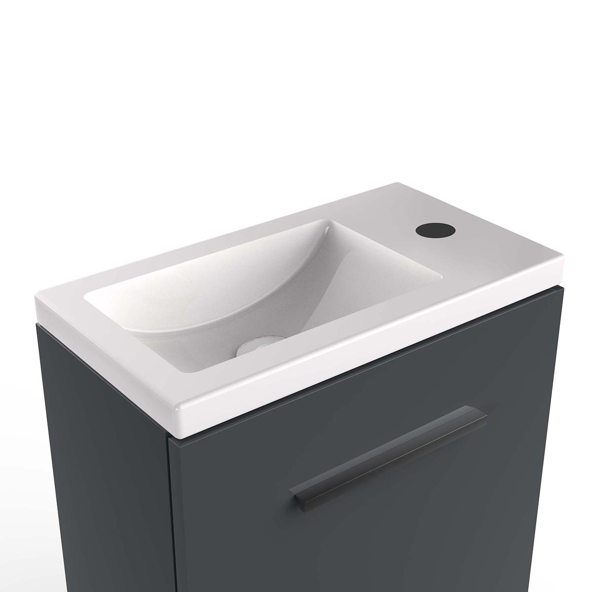 • 1 soft-close reversible door + 1 adjustable internal shelf + white resin basin