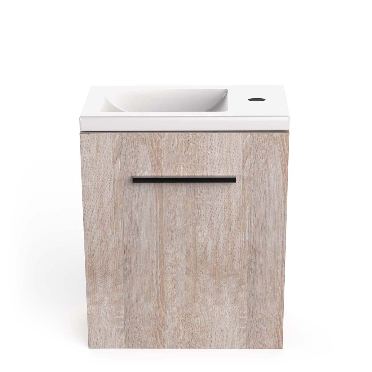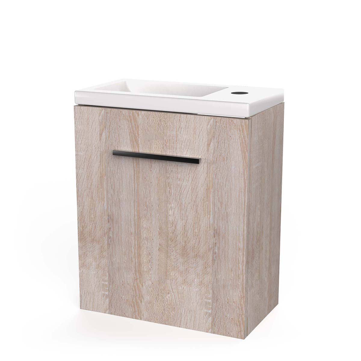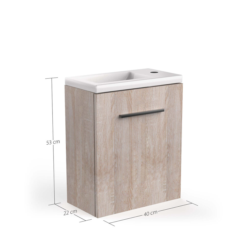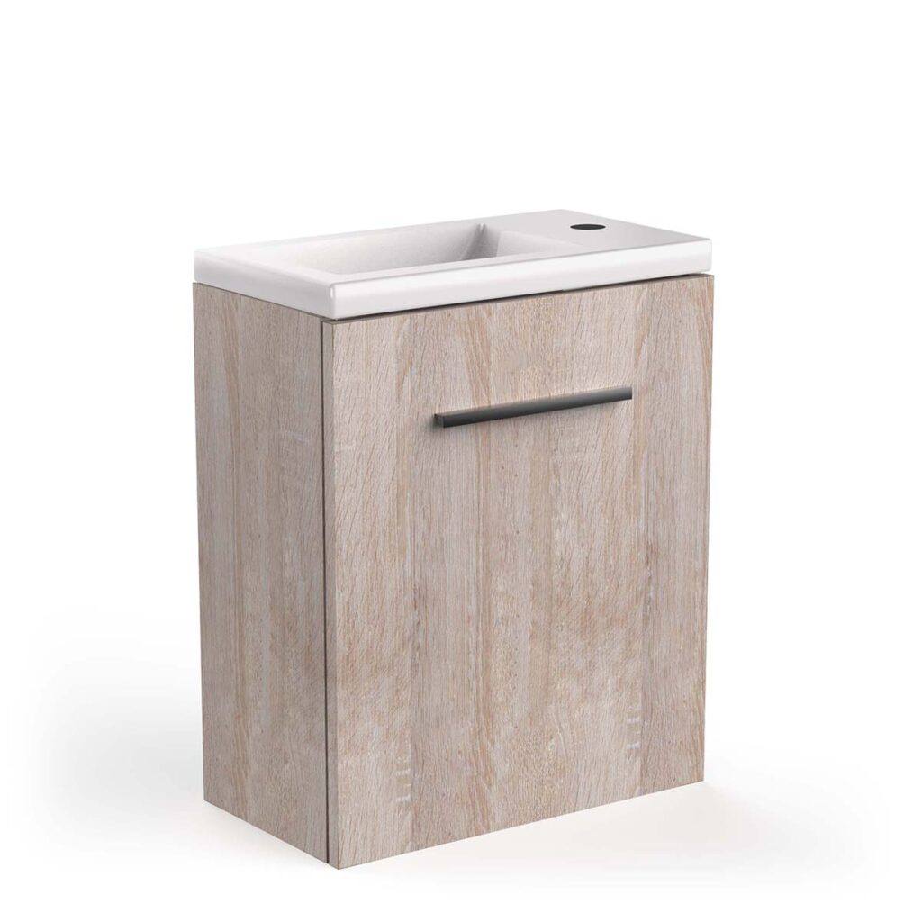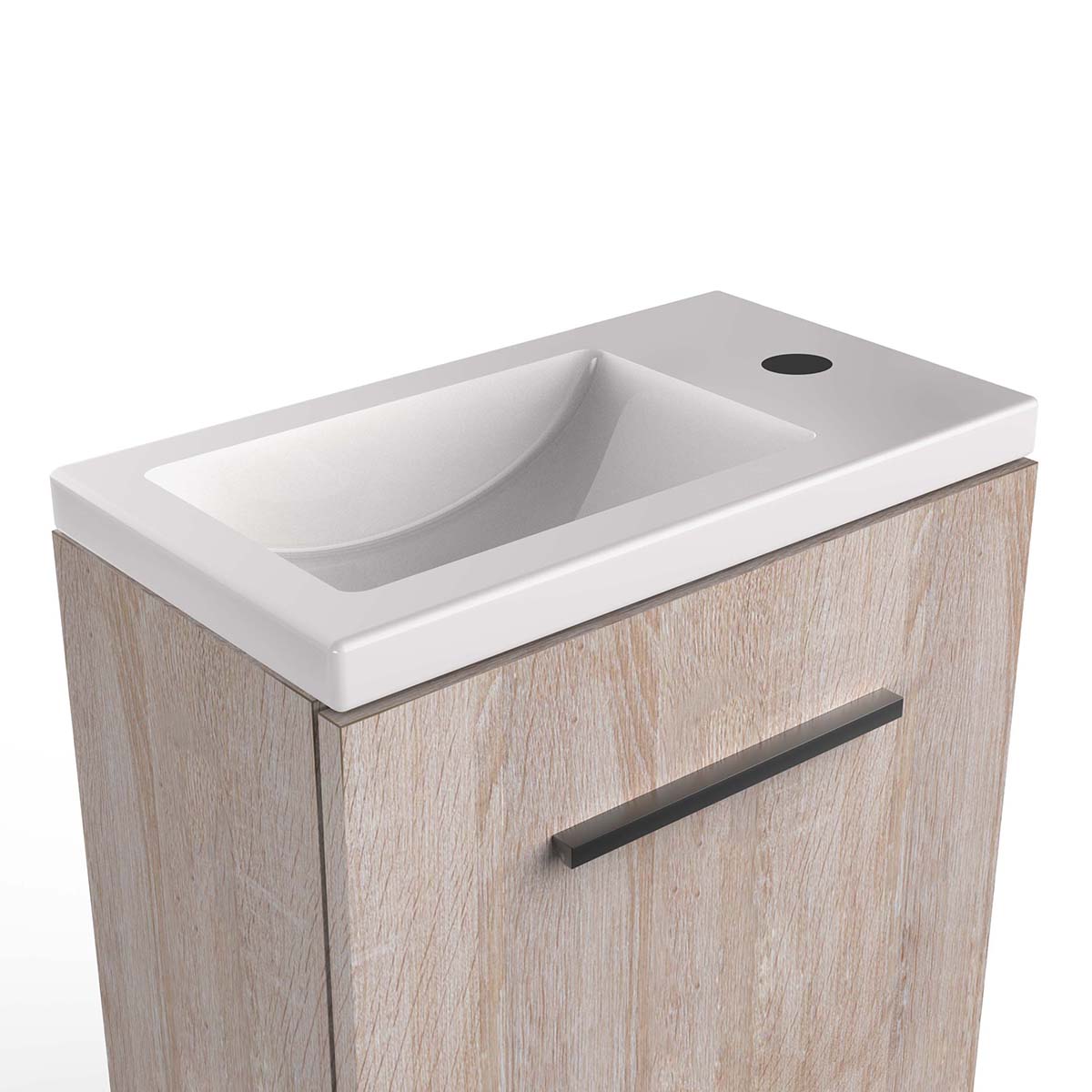 • 1 soft-close reversible door + 1 adjustable internal shelf + white resin basin