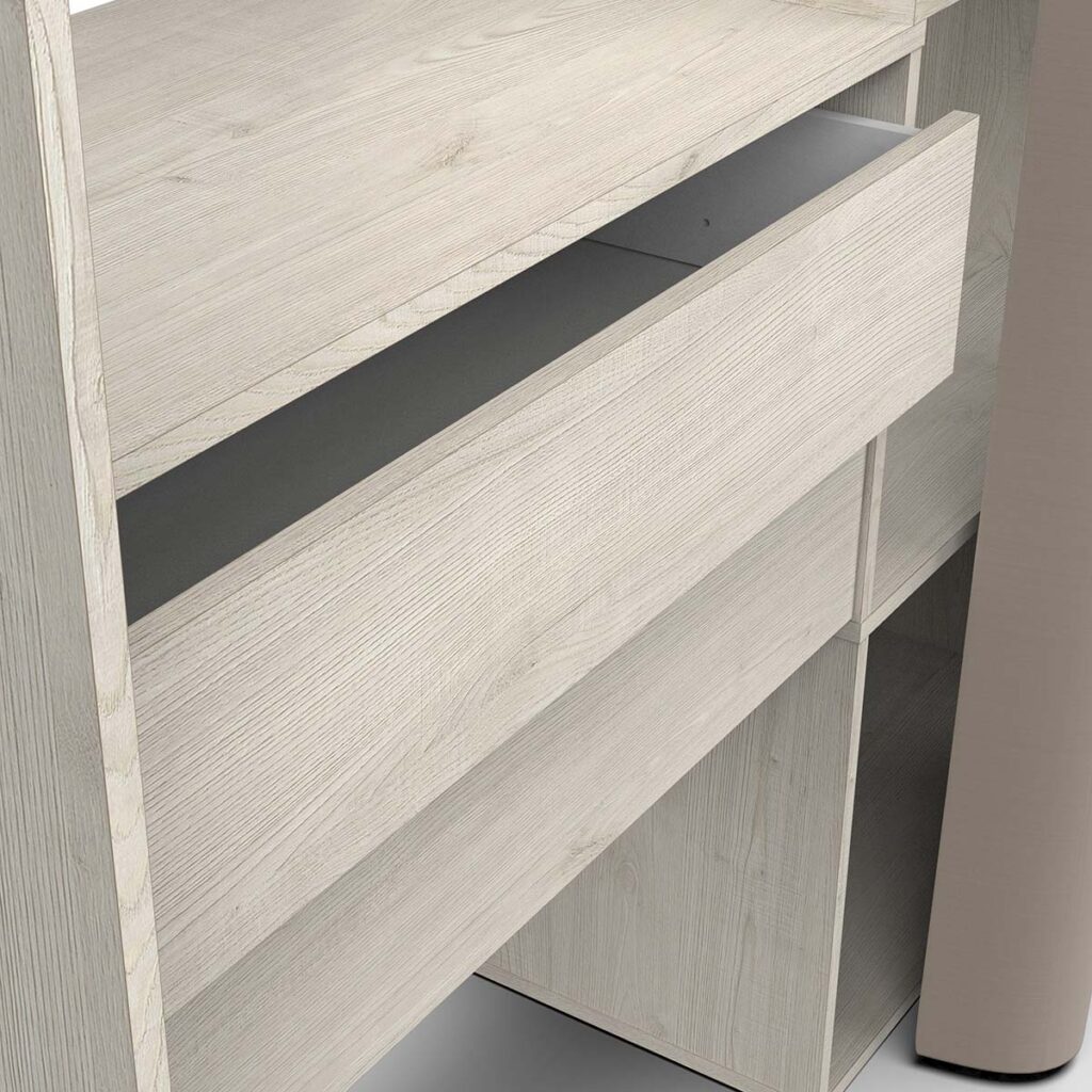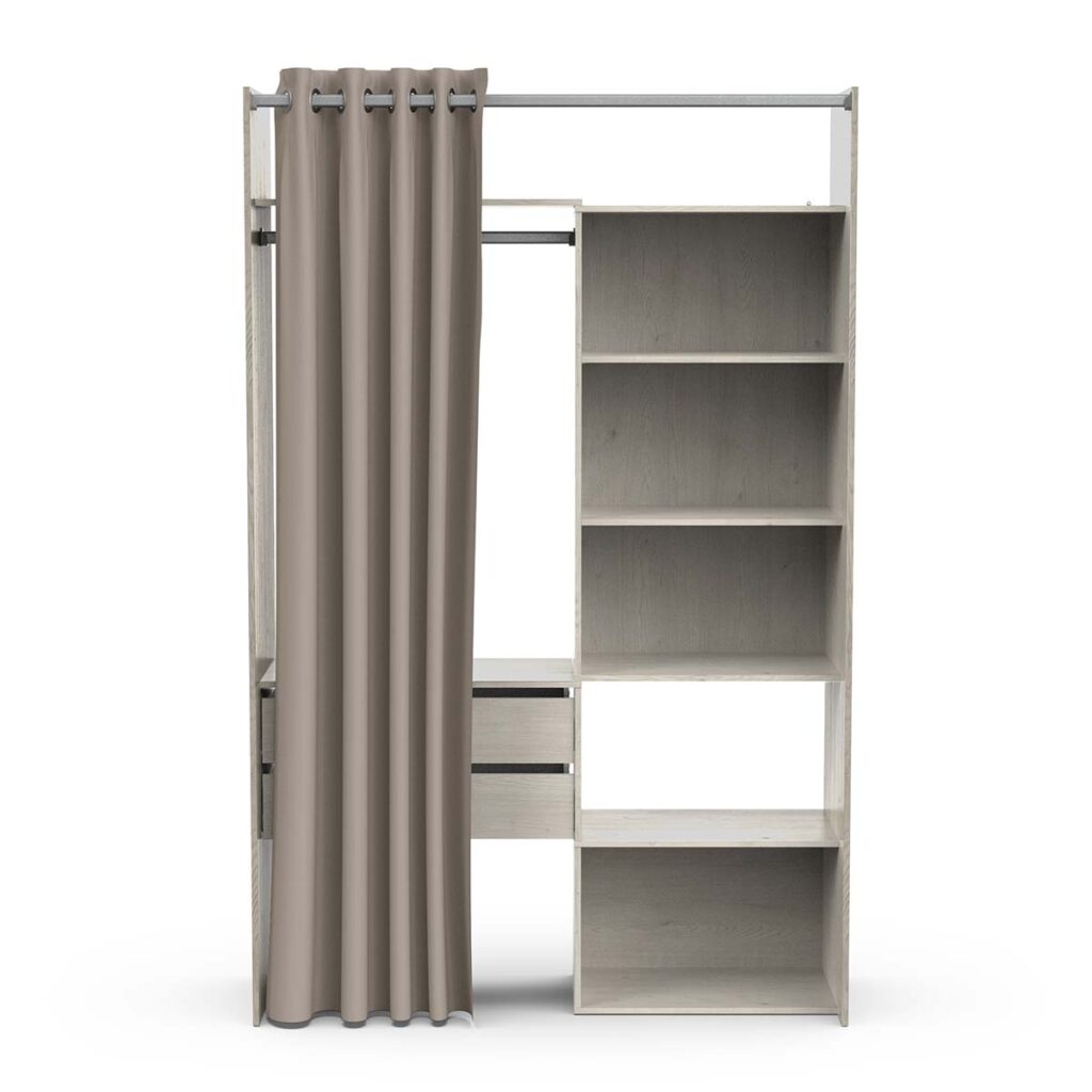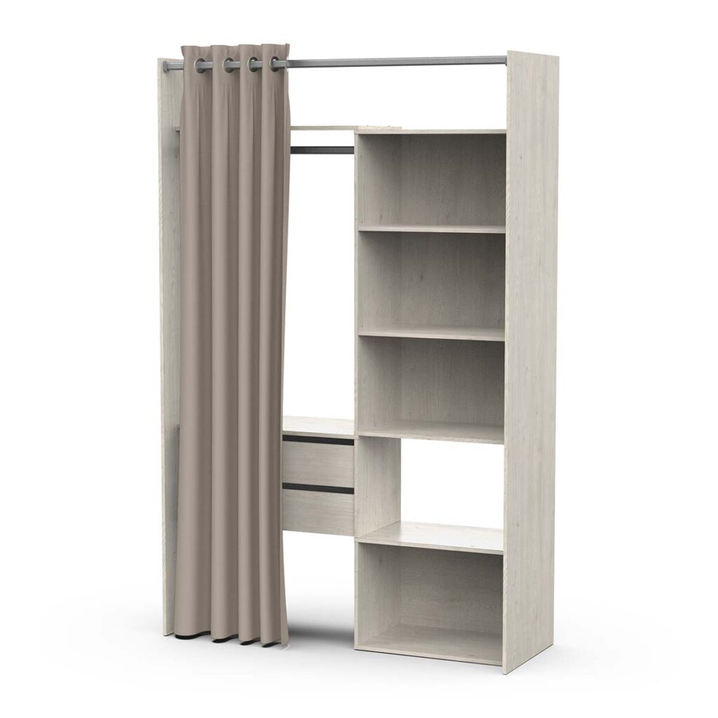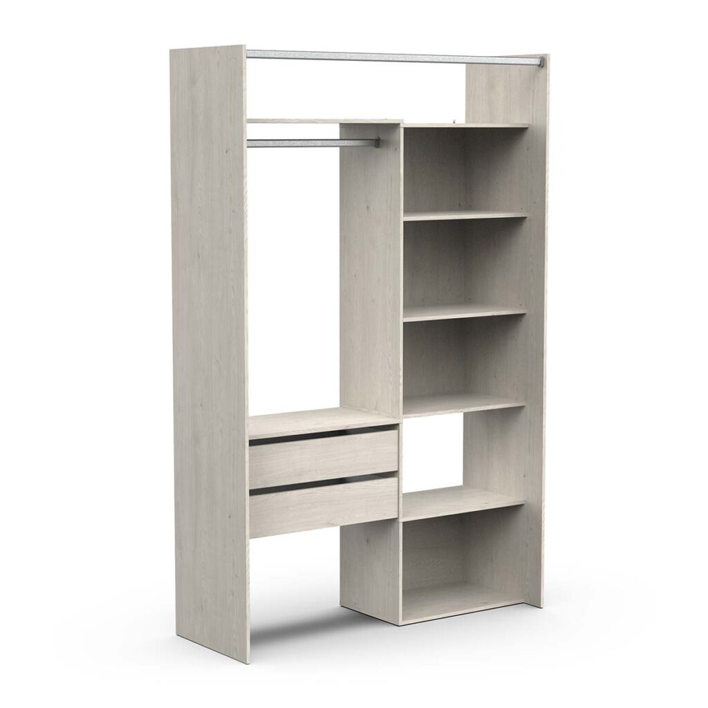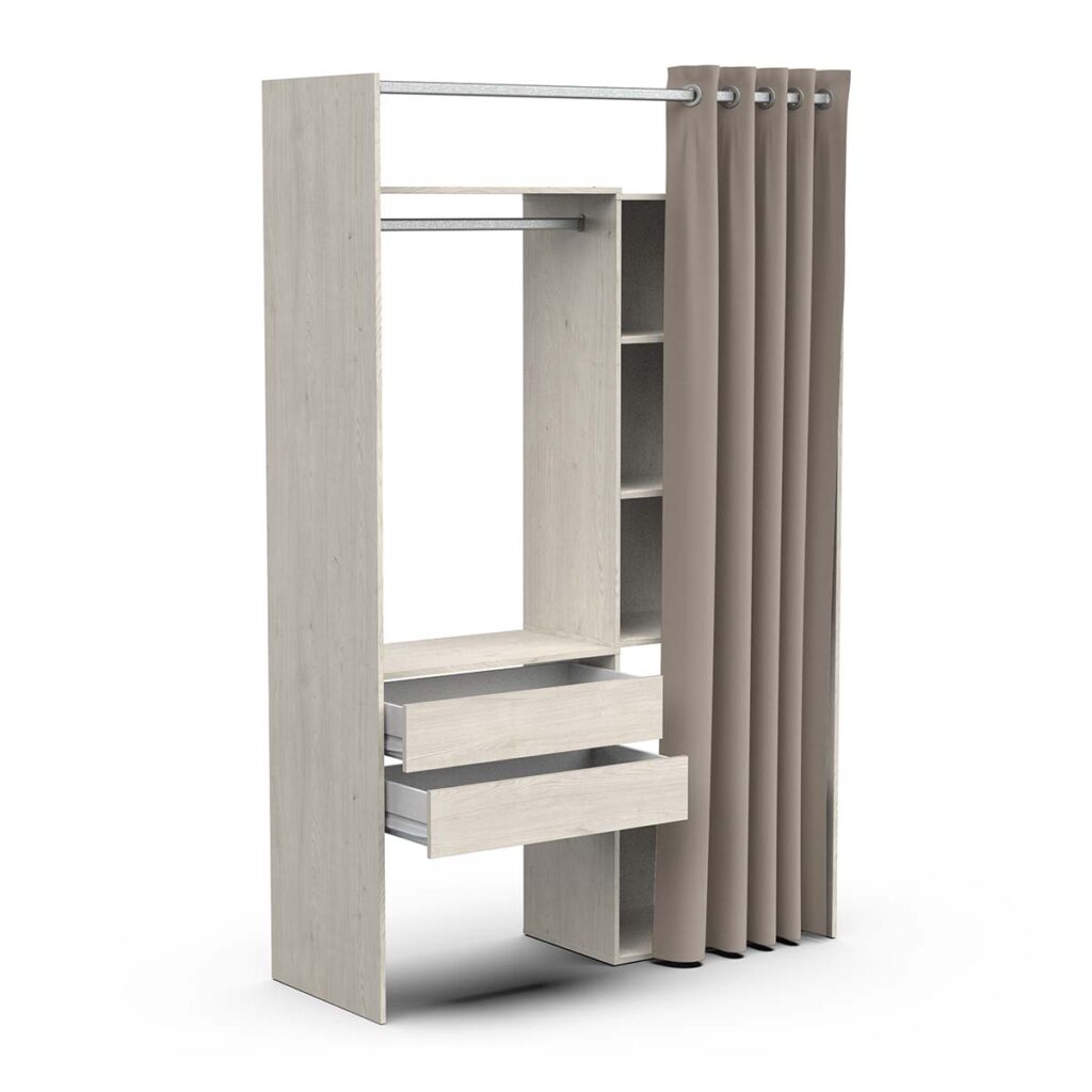 • 2 drawers on grey roller slides + 1 clothes rail (73 cm) + 5 compartments + 4 shelves