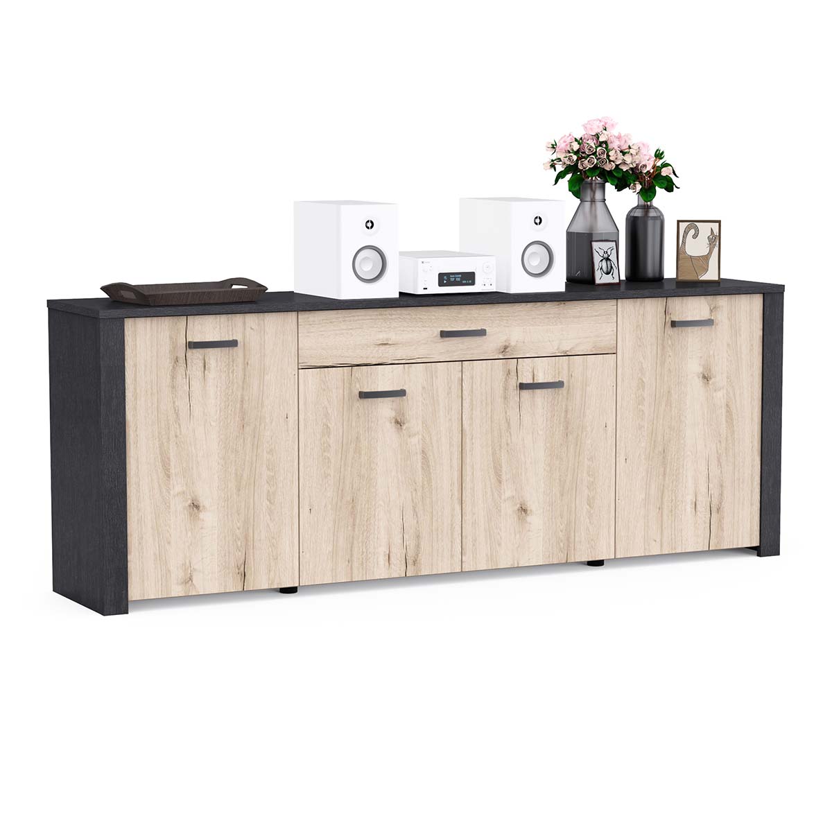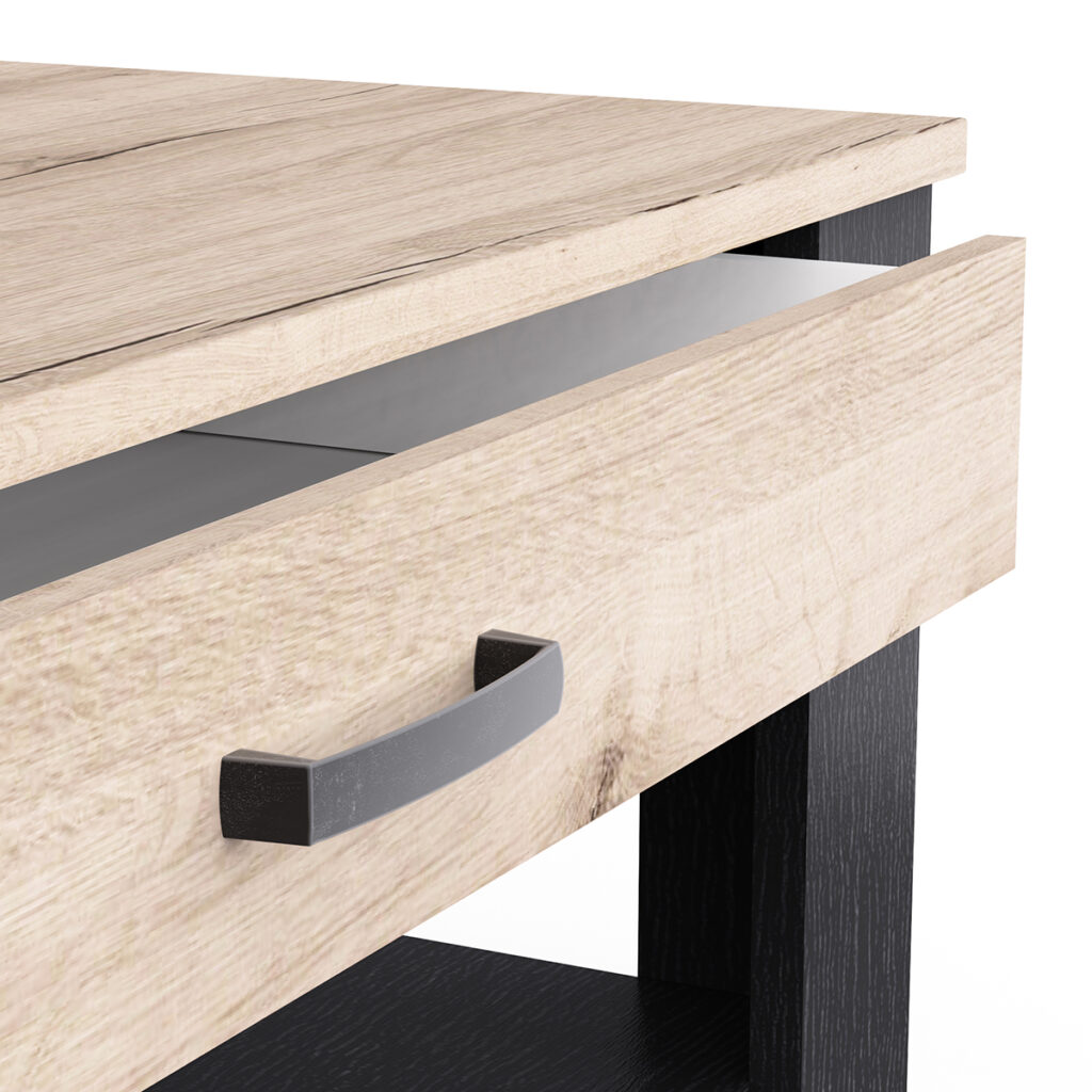 • 1 drawer (W90.6 × D38.7 × H8.6 cm) on roller slides – max. load: 6 kg