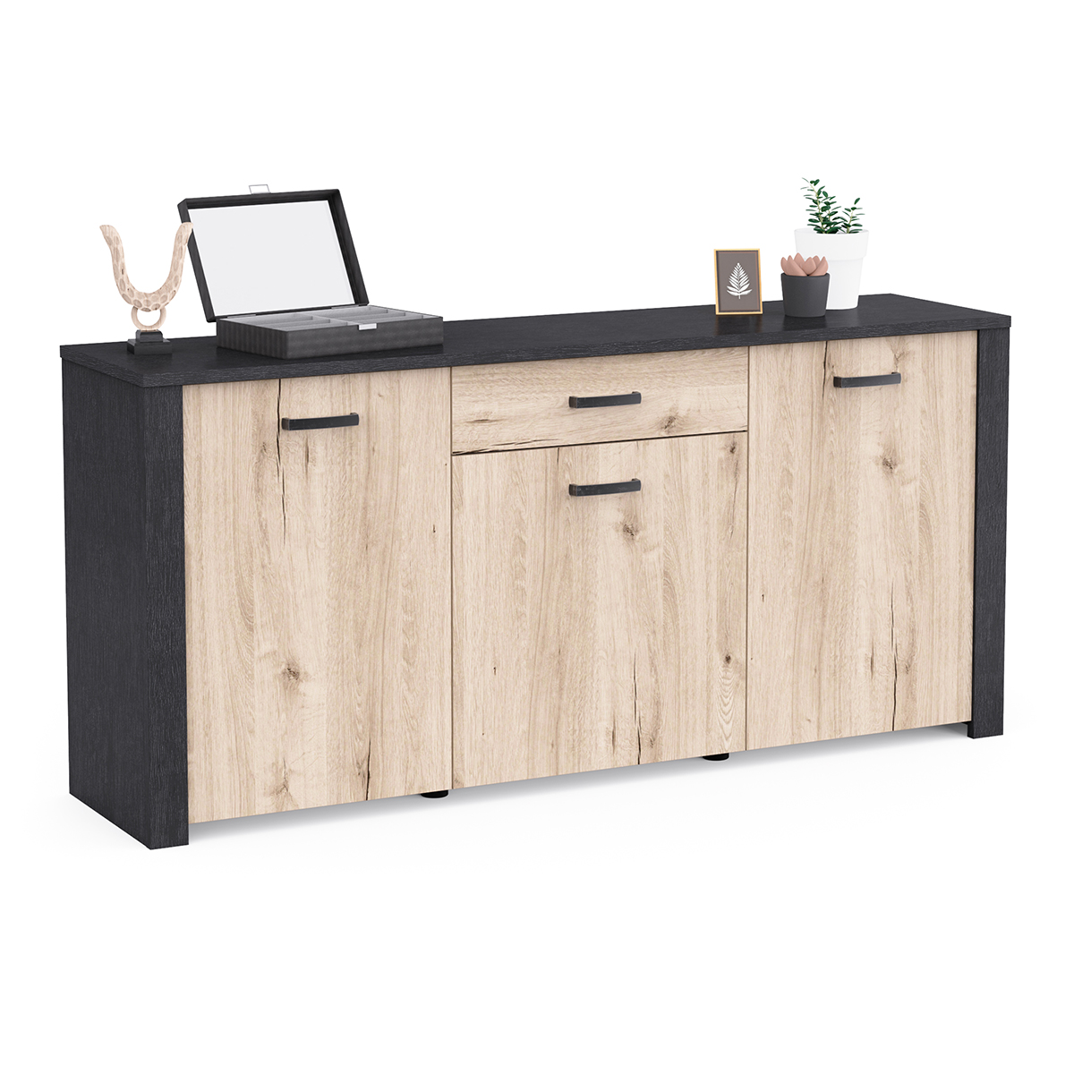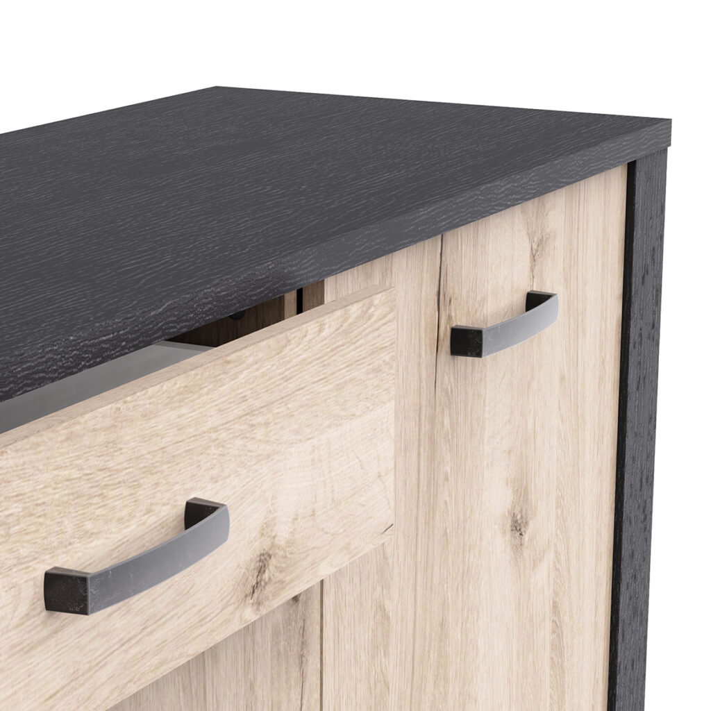 AUTHENTIC LOOK: TWO-TONE WOOD-EFFECT FINISH WITH AGED GREY HANDLES