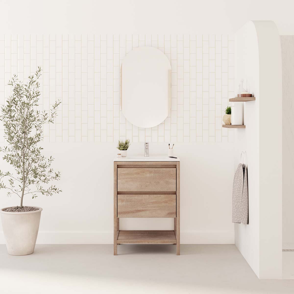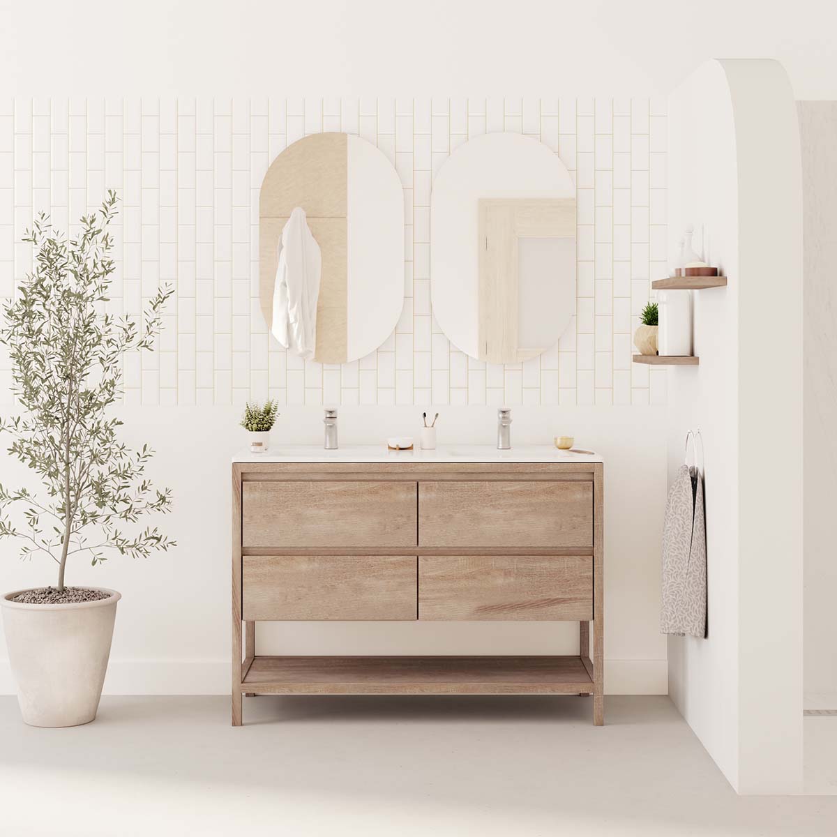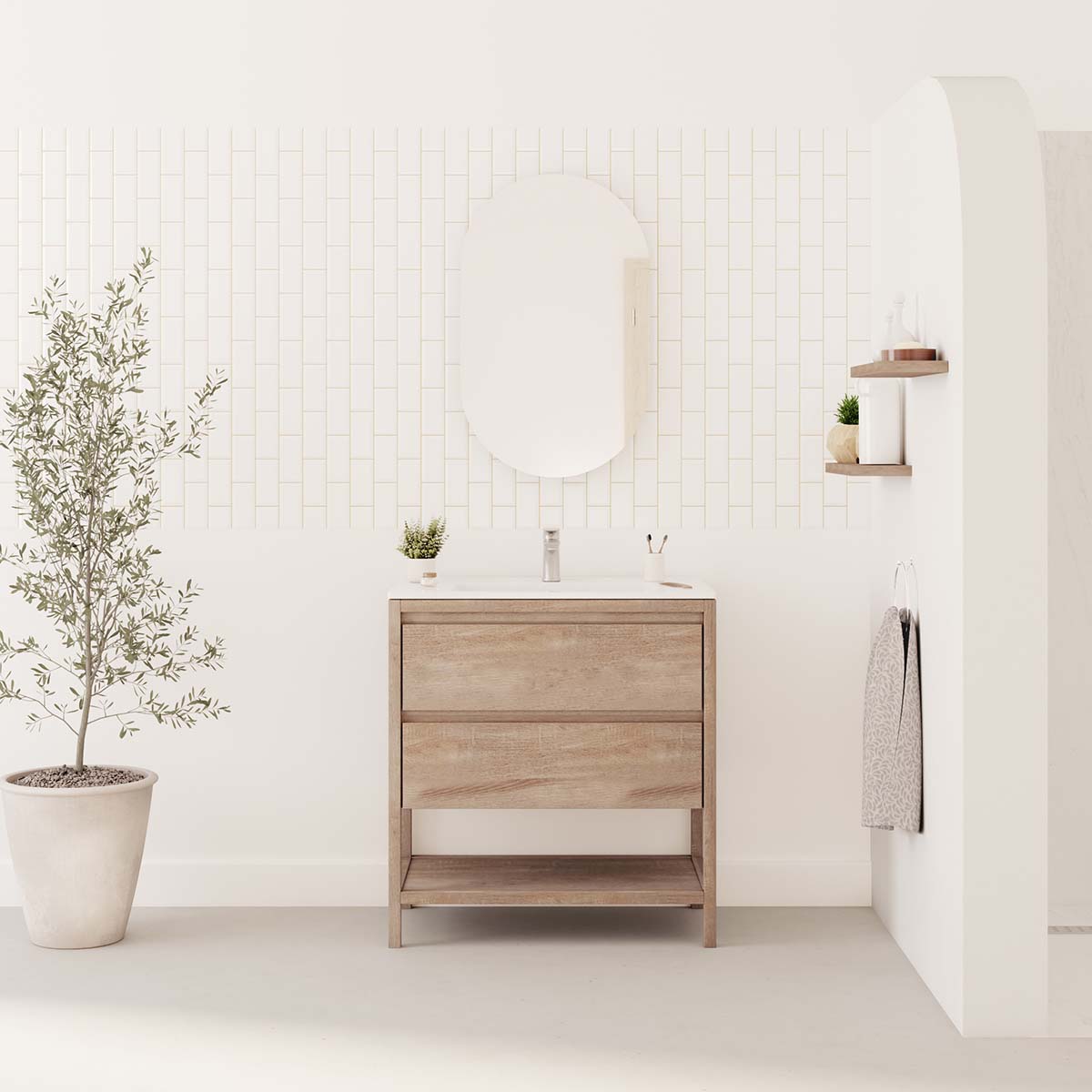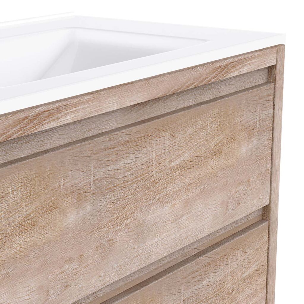 • 2 soft-close drawers + 1 open niche + single ceramic basin + L50 x H80 cm mirror