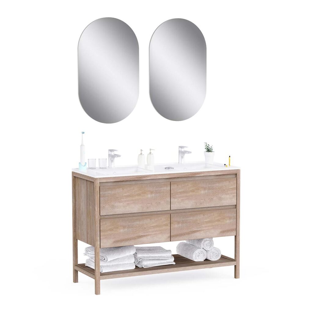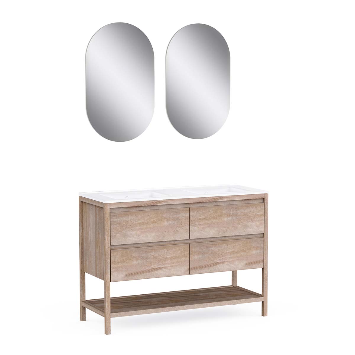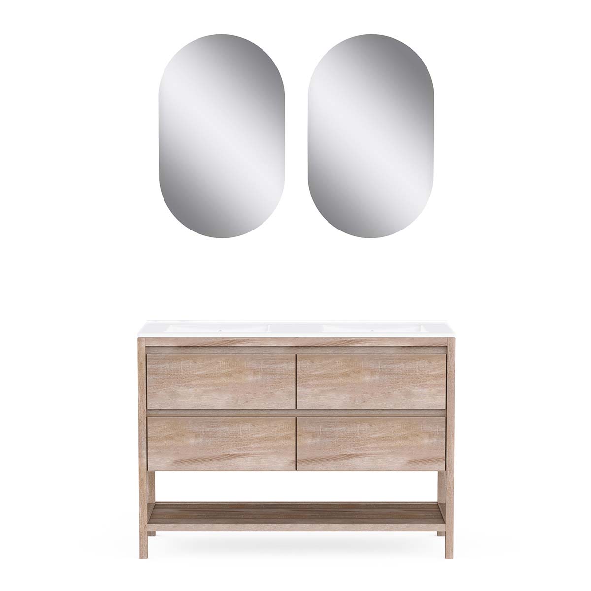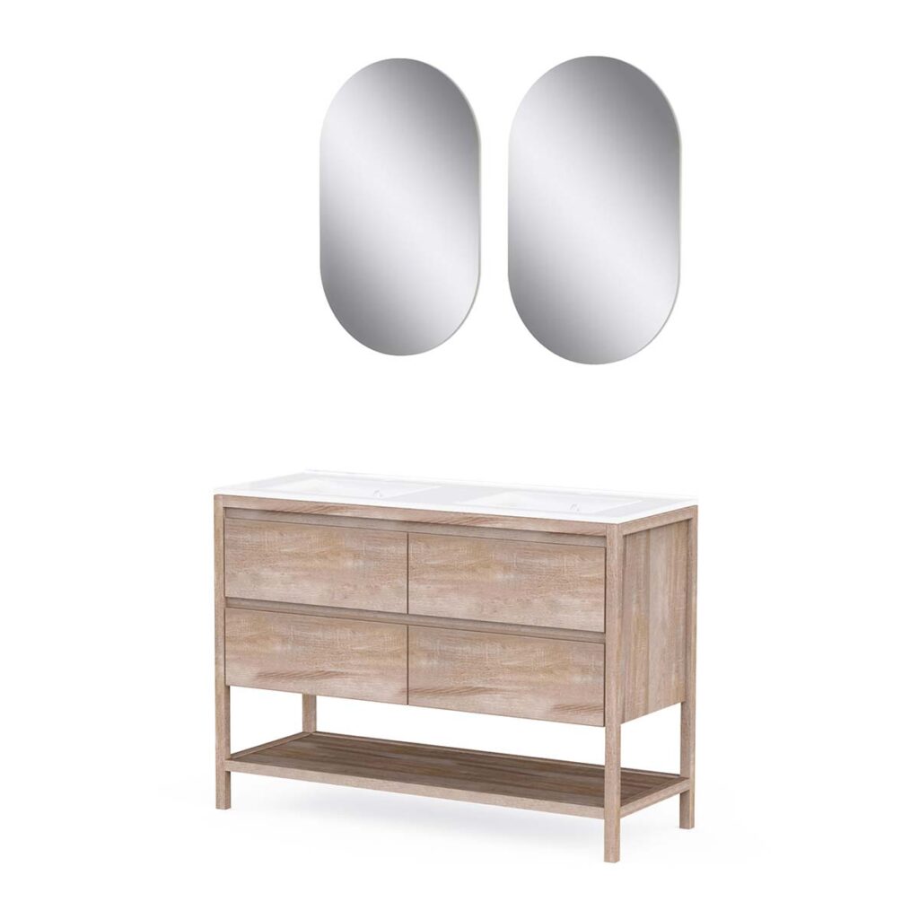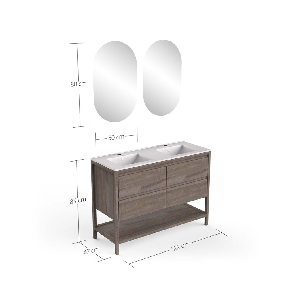 • 2 soft-close drawers + 1 open niche + single ceramic basin + L50 x H80 cm mirror