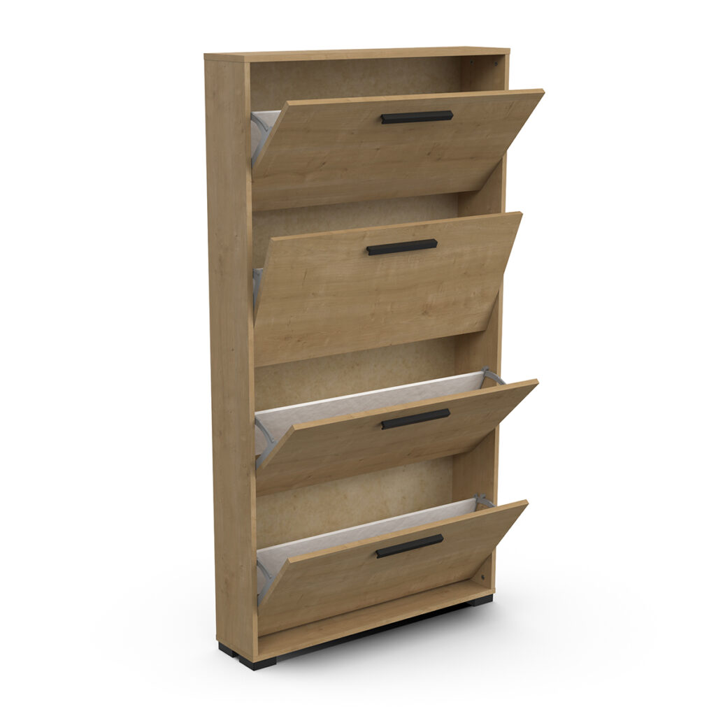 • 81 x 152 x 18 cm, 29 • Hamilton Oak• 4 flap doors for easy access and organization.• Holds up to 12 pairs of shoes.