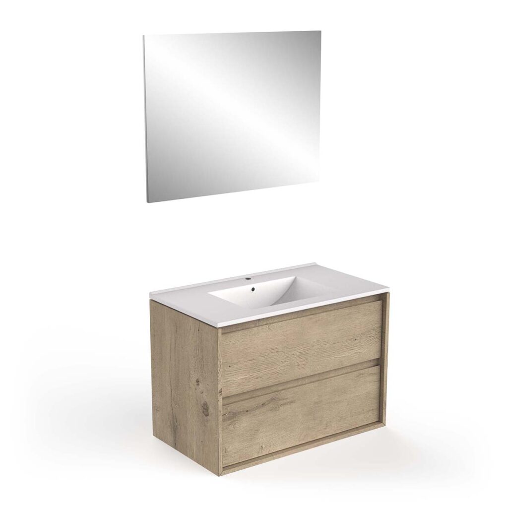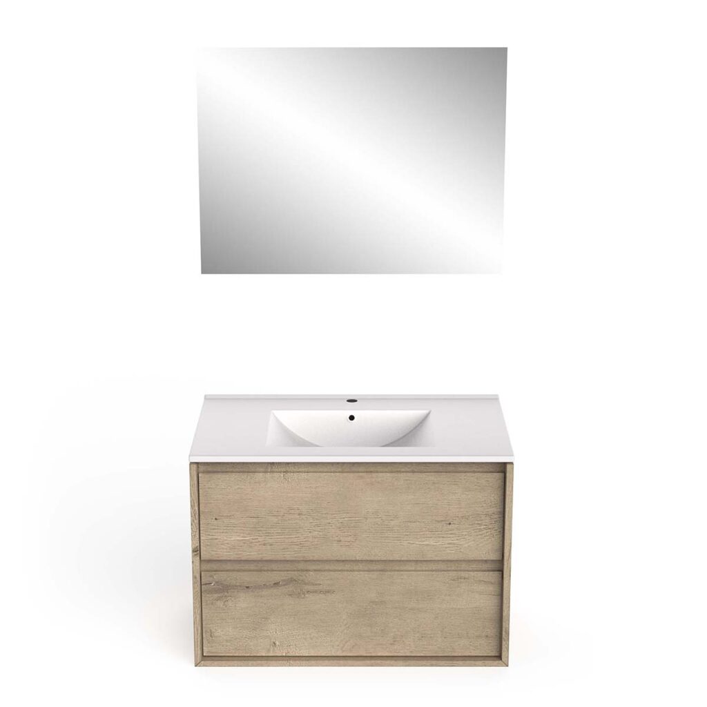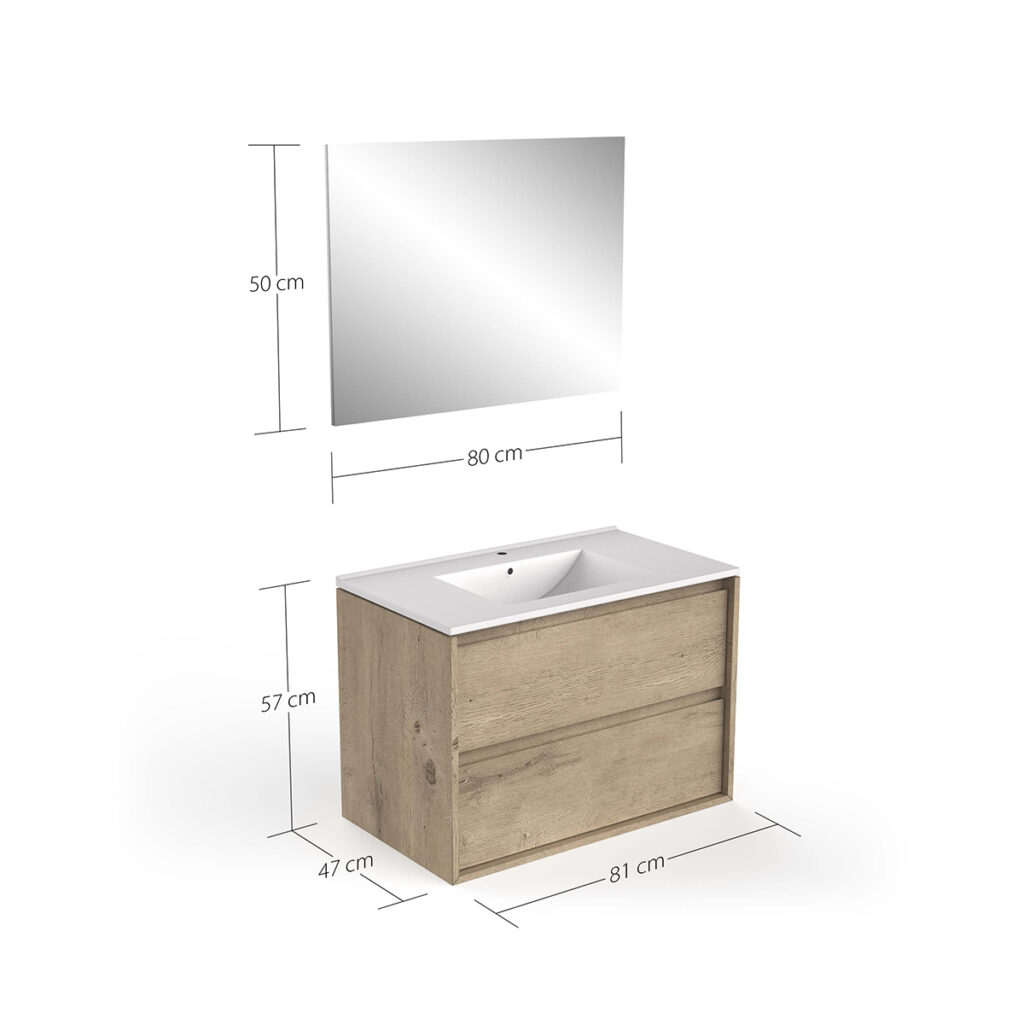 • 2 drawers + single ceramic basin + mirror W80 x H48 cm
