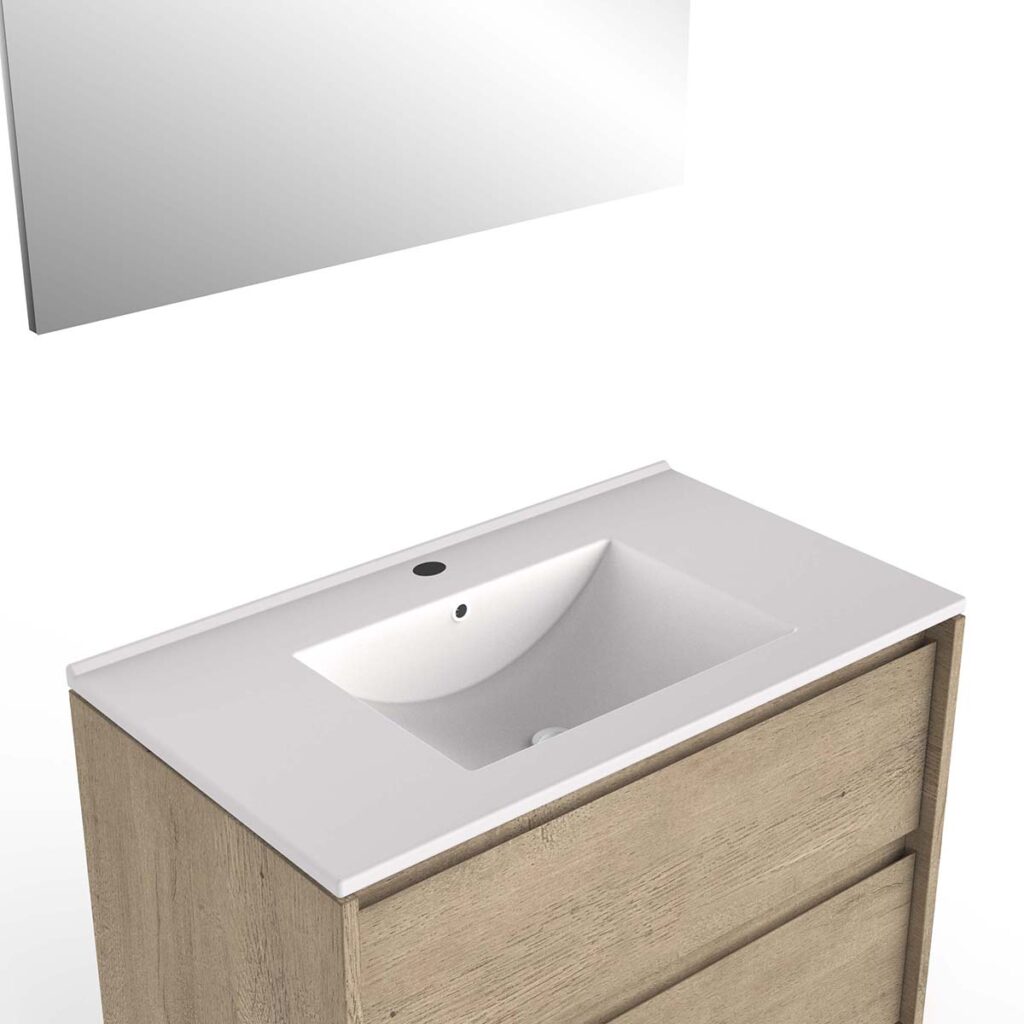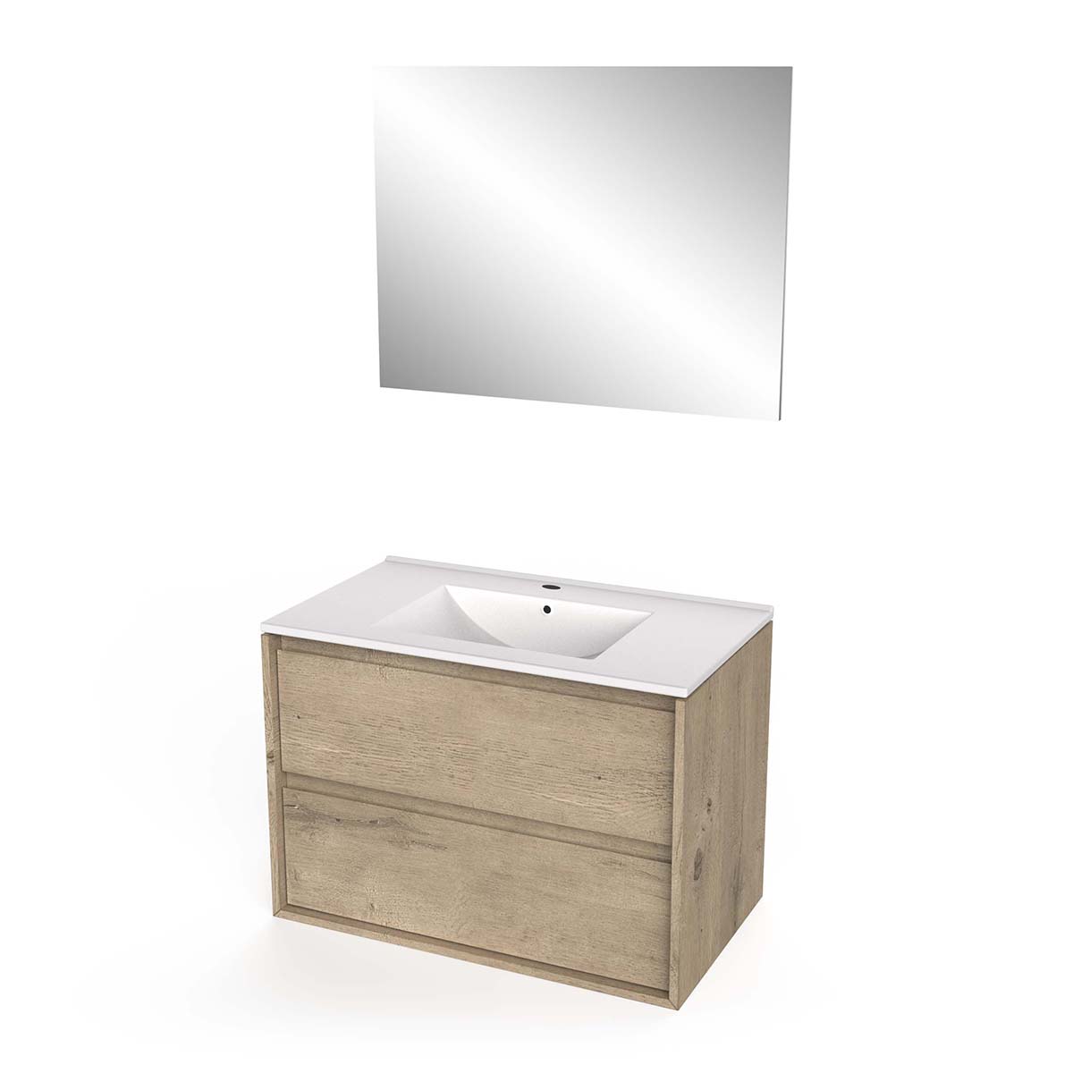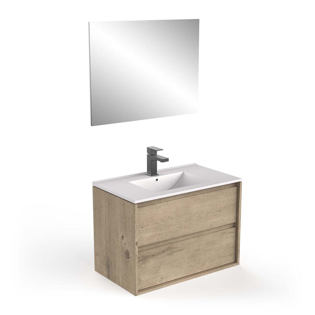 • 2 drawers + single ceramic basin + mirror W80 x H48 cm