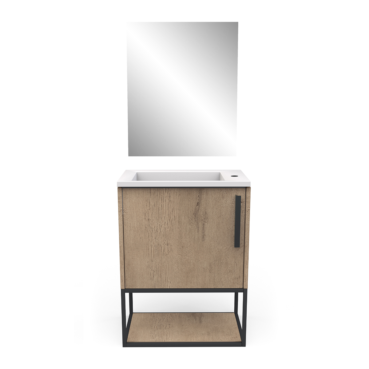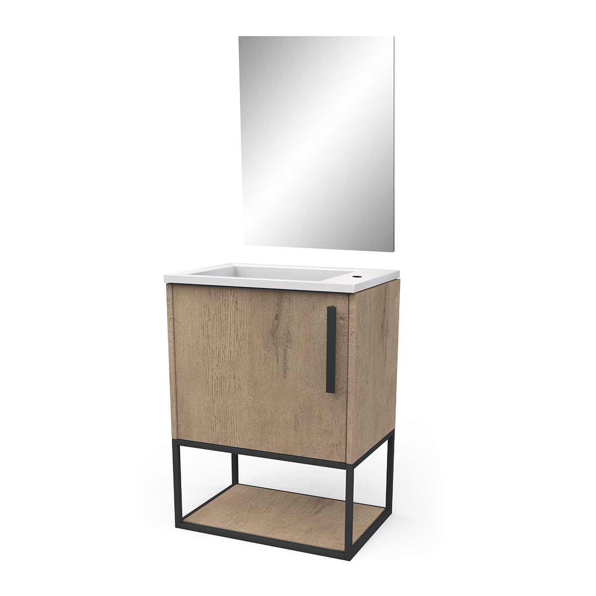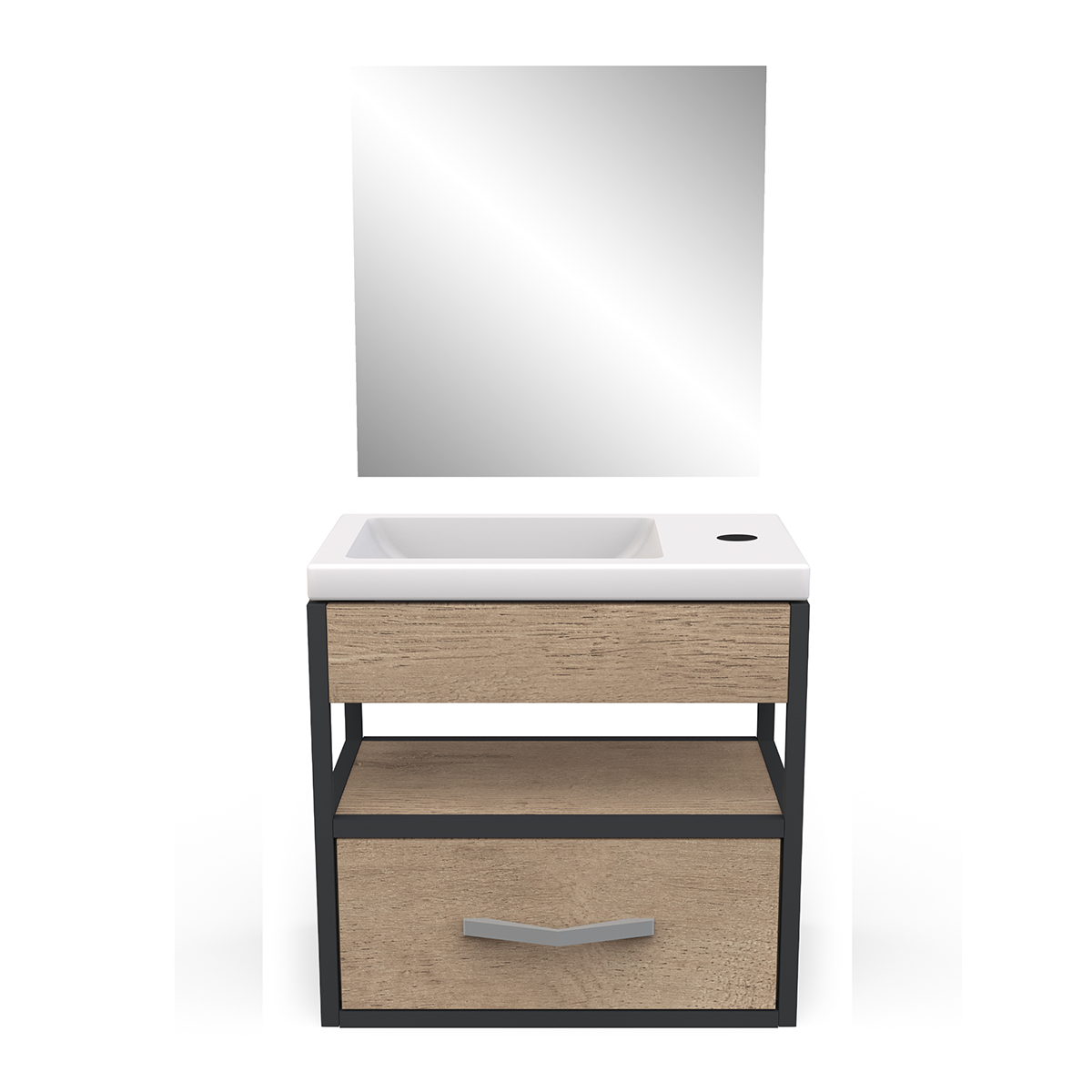 • 1 soft-close drawer + 1 open niche + resin basin + mirror