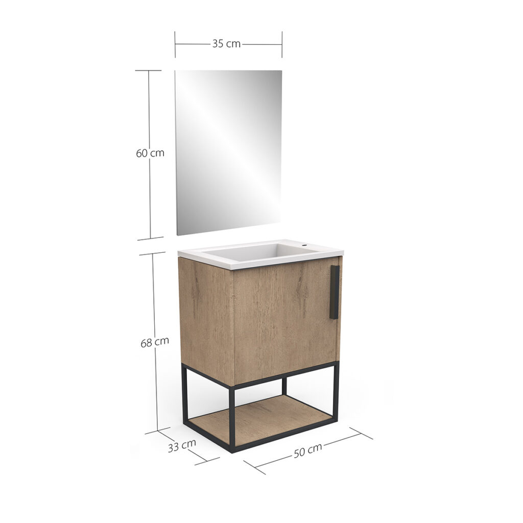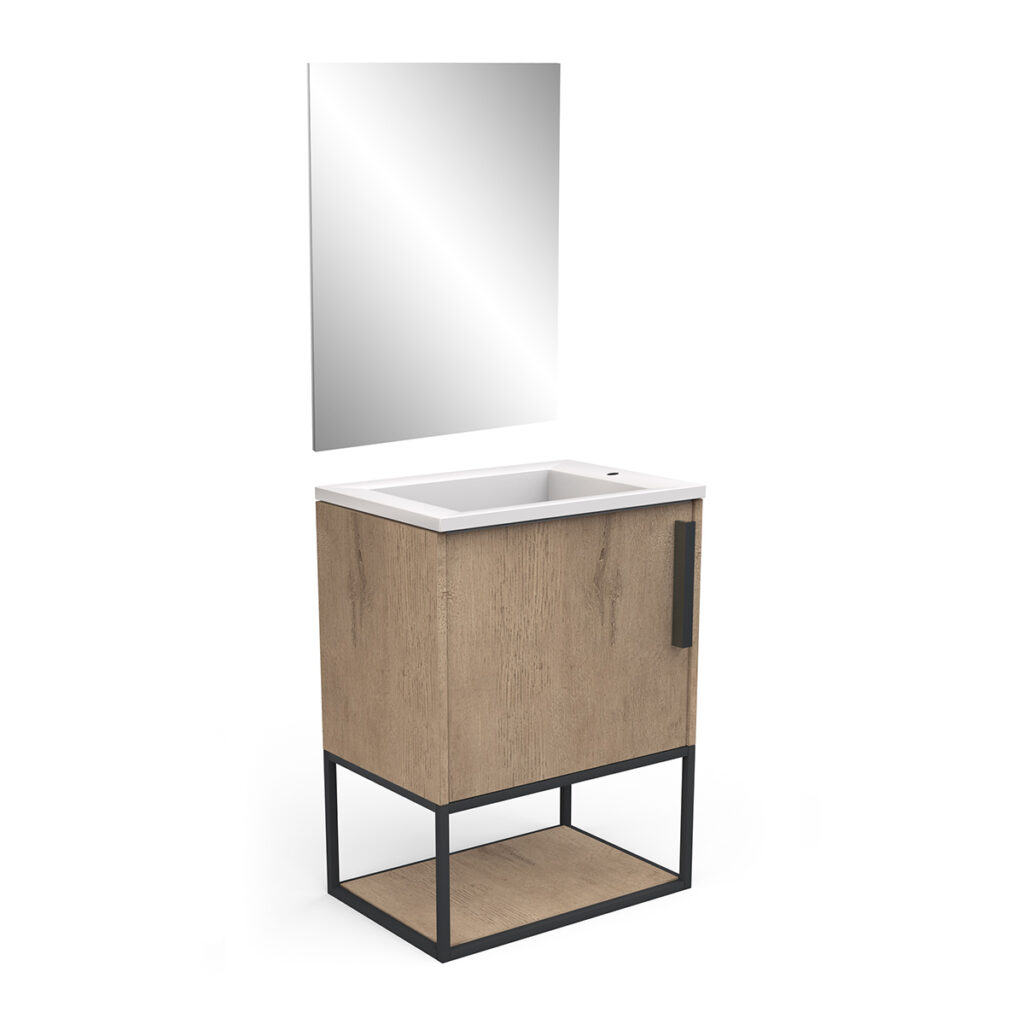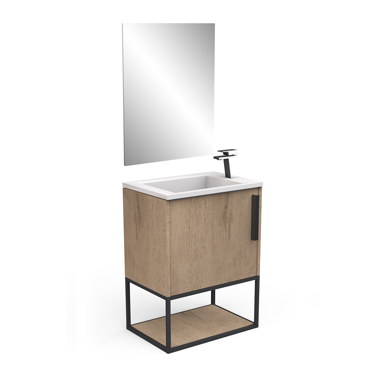 • 1 soft-close drawer + 1 open niche + resin basin + mirror