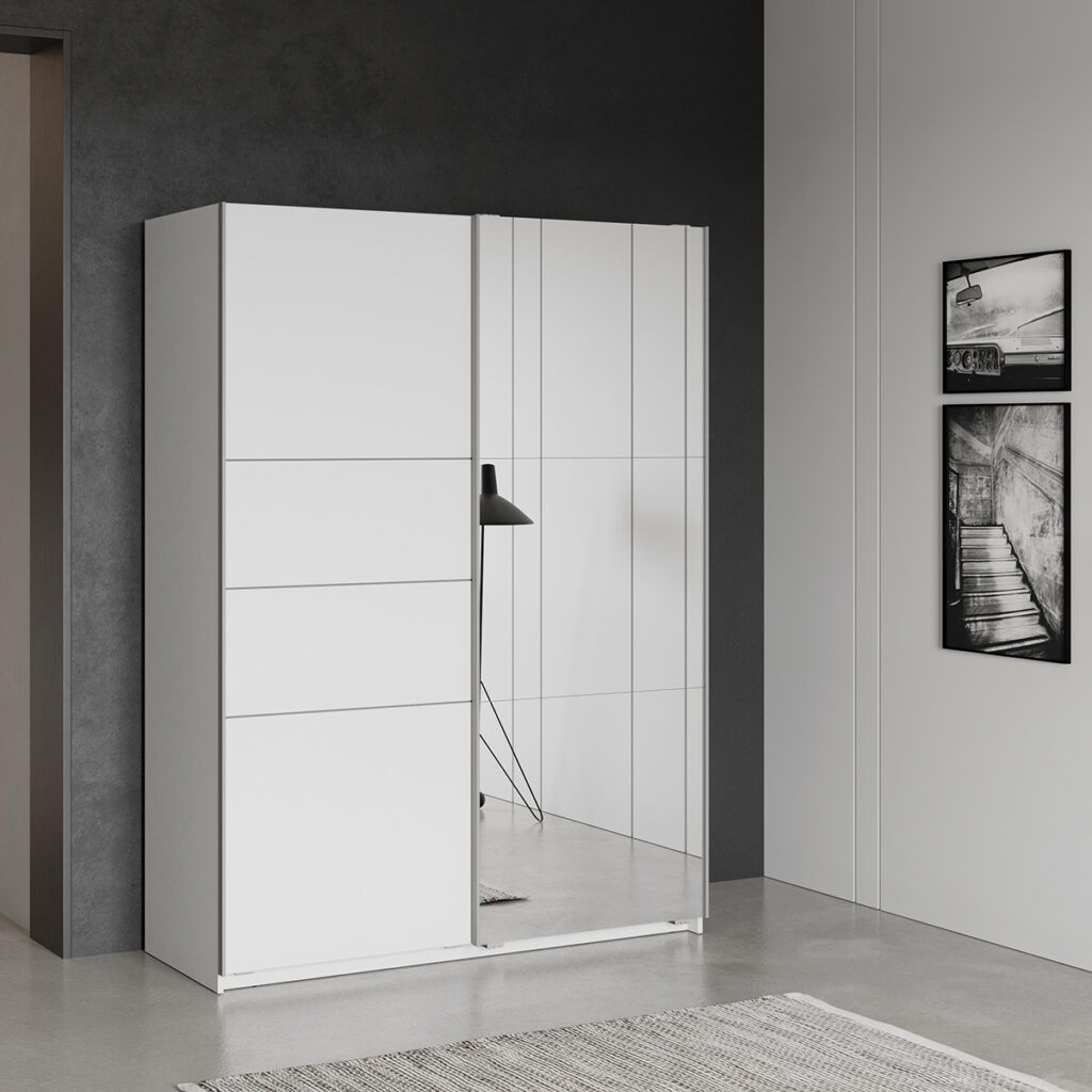 273260 – WARDROBE 2 SLIDING DOORS 1 MIRROR 150CM Matt White
